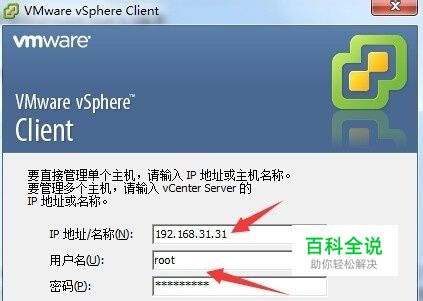启动vmware esxi系统,PC安装vmware esxi的vmware vSphere这个管理工具,网卡1作为vmware esxi的管理端口,网卡2作为vmware esxi的网络数据传输接口,启动vmware vSphere管理工具,输入网卡1的管理IP地址192.168.31.31,用户名admin,密码admin!@#,然后点击登录