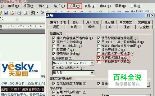 单击Word“工具→选项”命令,打开“选项”对话框,在“编辑”选项卡中勾选“保持格式跟踪”复选框即可。 图示:在“工具→选项”菜单中做设置