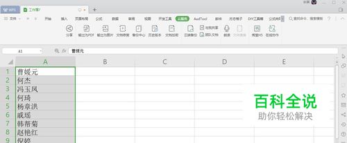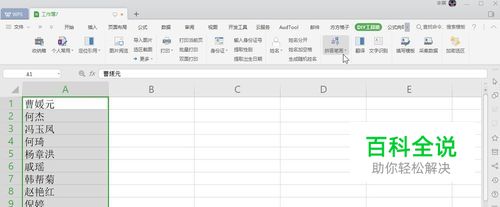 首先选中姓名单元格区域,点击右上角的工具箱,
