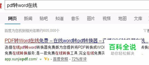 首先说说第一种方法:在线转换; 在线转换是最方便的方法,不用下载转换工具可以直接转换,先打开百度输入“pdf转word在线";