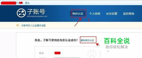 第二种方法:要解绑的子账号自己登陆【子账号管理后台(https://zizhanghao.taobao.com/)】,点击【身份认证】,操作解除身份认证
