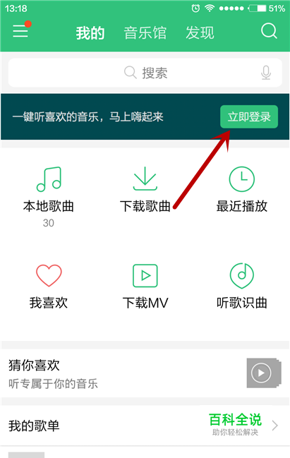 下载安装完我们的QQ音乐手机版之后,点击进入到该程序中,在主界面中,我们点击立即登录按钮。