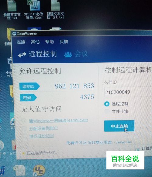 发现问题后就很好解决了,统一版本为最新的TeamView12后,能成功连接。如图所示。
