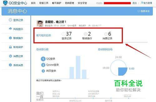 第四步:进入界面,我们可以看到“账号相关信息”,点击“登录记录”,我们可就查看到最近qq登录ip如何查询,最近qq登录记录查询