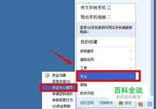 第二步:依次点击“安全”,“安全中心首页”,进入QQ安全中心首页