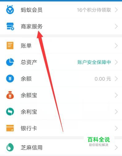 进入之后,选择“商家服务”,进入下一页面,如图所示。