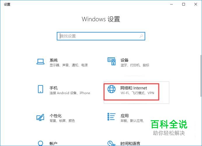 之后我们点击网络和Internet,如图所示;