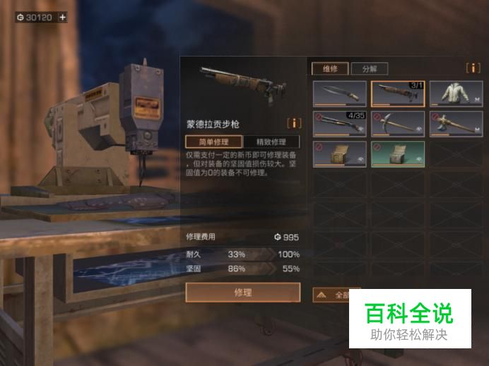 最后再点击【修理】功能,这样就完成武器修理的操作了。