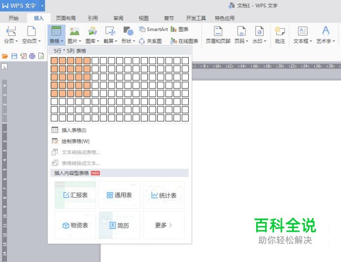 首先,我们打开一个空白的word文档,插入表格,如图。