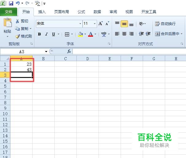 之后我们输入两个数字,然后我们点击选中图示中的单元格;