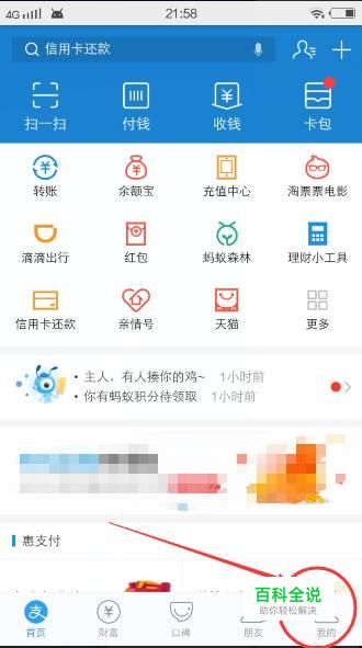 【我的】 打开支付宝,在主界面点击下方的【我的】,如下图所示: