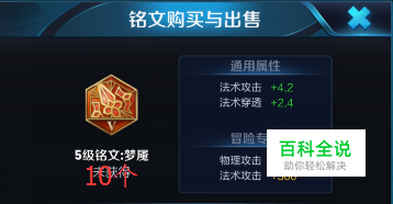 露娜五级铭文总属性加成:法术攻击+42、法术穿透+90、移速+10%、攻击速度+16%