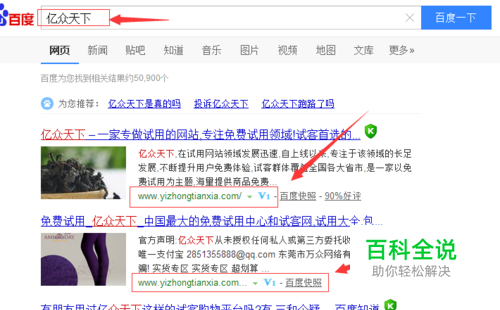 打开浏览器,在搜索框中输入【亿众天下】,就会出现搜索结果,如图