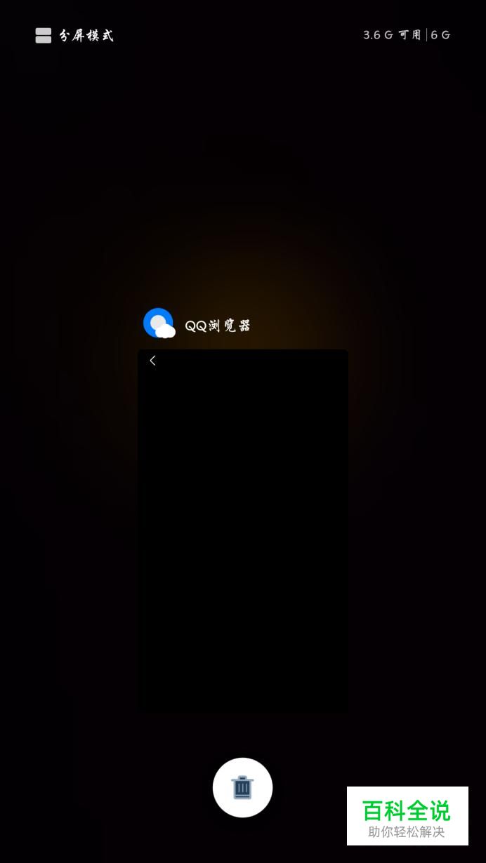 点击手机的任务键,即下排最左边的按钮,我们可以看到现在后台有一个QQ浏览器。