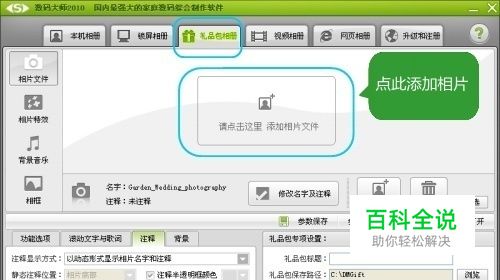 导入制作个性相册的相片素材 既然要制作礼品包相册,首先要切换到“礼品包相册”选项卡,点击中间大大的按钮即可快速导入相片。
