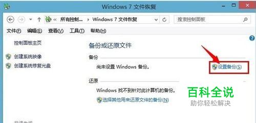在打开的窗口中,在左侧最下方的“Windows 7文件恢复”,点进去就能进入备份和还原界面了。