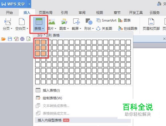 弹出的界面,我们点击表格,之后我们点击选择3*2的表格;