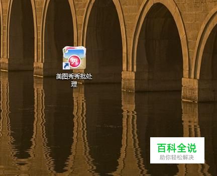 如下图,在我们的电脑桌面上找到美图秀秀批处理并点击它