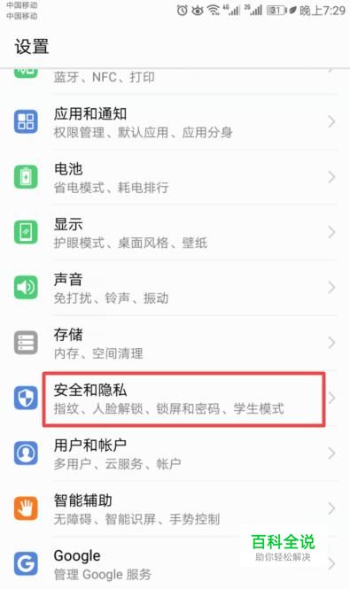 然后我们点击安全和隐私;