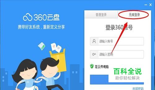 登录360云盘,在不常用的电脑上登录时建议使用无痕登陆(首先要下载安装360云盘)。