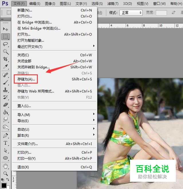 打开图片之后在文件菜单哪里找到存储为选项,如图所示: