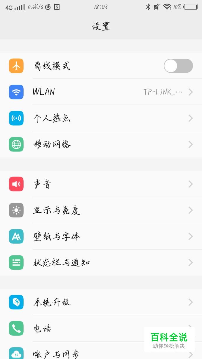 向下滑动手机,点击“状态栏与通知”选项,如图1箭头所示。你会看到出现一个新的界面,如图2所示。