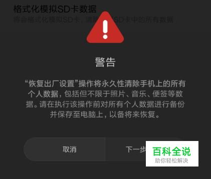 在了解完系统“警告”内容后,点击下一步,就能对手机进行格式化了。