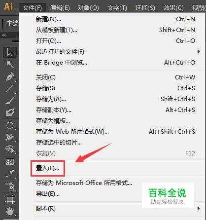 打开AI之后我们在文件菜单里找到导入选项,如图所示: