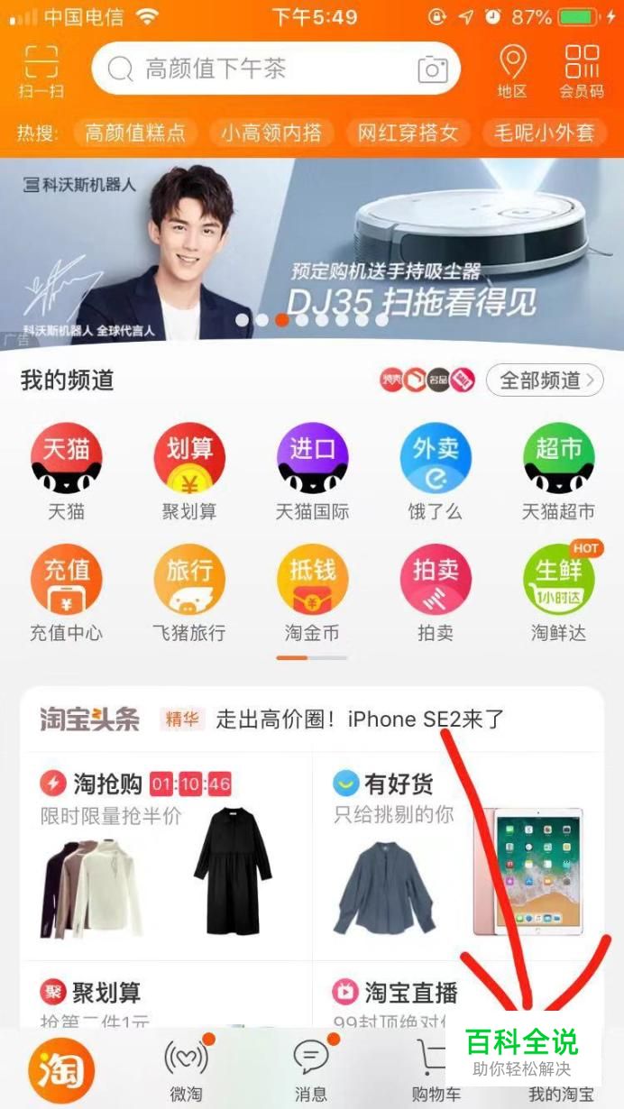 进入淘宝首页后,点击【我的淘宝】进入页面。