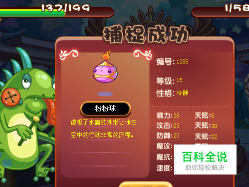 然后我们就会看到,我们已经成功捕捉到了粉粉球宠物了哦,哈哈,简单吧,小洛克们赶快试试吧。