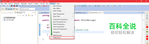 打开eclipse,选择菜单栏上方window中Preferences选项。