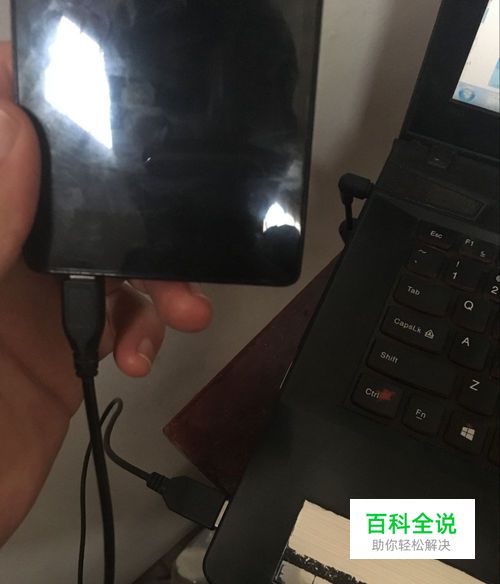 首先将 电脑和手机通过手机数据线进行连接,保障手机和电脑之间是互通的。