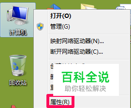 在桌面右键单击计算机,然后选择属性。