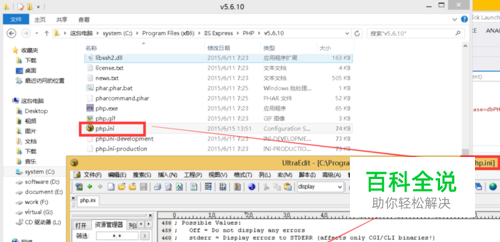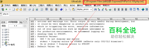 打开php安装目录下的php.ini文件,将其中的 “display_errors”这一行,如下图所示: