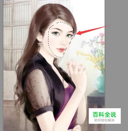使用套索工具我们在人物的面部上画出需要的选区,如图所示: