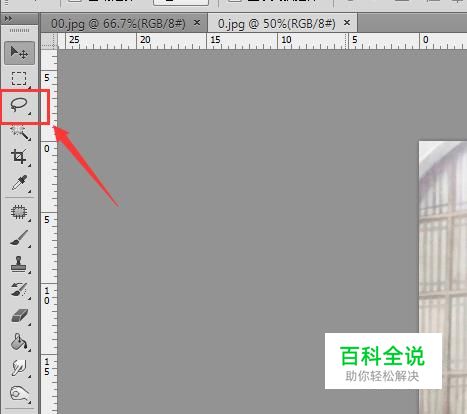 使用ps将我们的图片打开然后在工具箱内找到套索工具,如图所示: