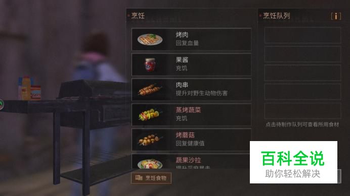 点击食物名称,就可以看到食物烹饪所需要的食材,如果食材齐全就可以烹饪啦,点击制作就可以生产啦!