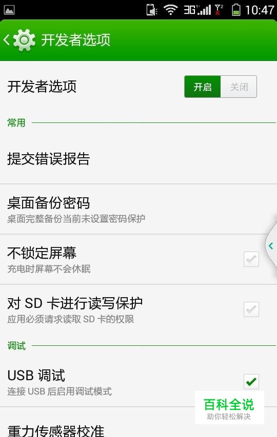 1、打开【设置】——【关于手机】如下图; 2、点击进入【手机配置信息】如下图; 3、连续点击七次以上【版本号】直至出现开发者选项,如下图; 4、点击进入【开发者选项】可开到【USB调试】勾选即可,如下图; 至此,开发者选项显示,USB调试打开,再安装驱动或使用豌豆荚连接手机自动识别安装驱动,与电脑连接就没有问题了
