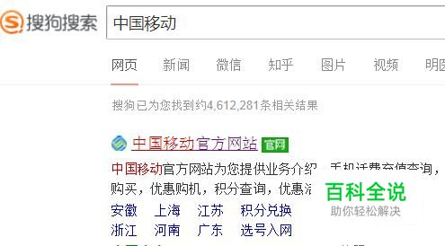 然后点击中国移动官方网站,如下图所示。