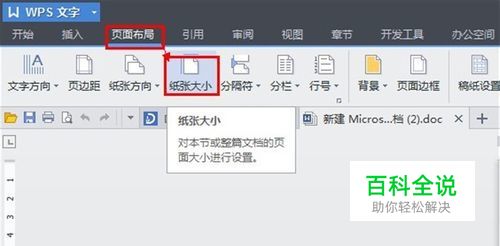 打开需要打印的Word文档,选择【页面布局】下面的【纸张大小】,如下图。