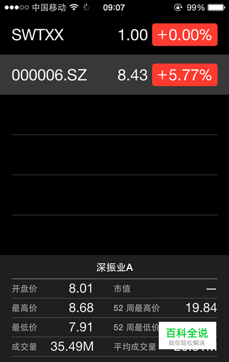 完成后就会在刚开始的画面看到你刚才添加的股票。选中就能看到其基本信息,此软件股票信息为雅虎提供,之后看到当前股票状态、近期走势、企业新闻。如图