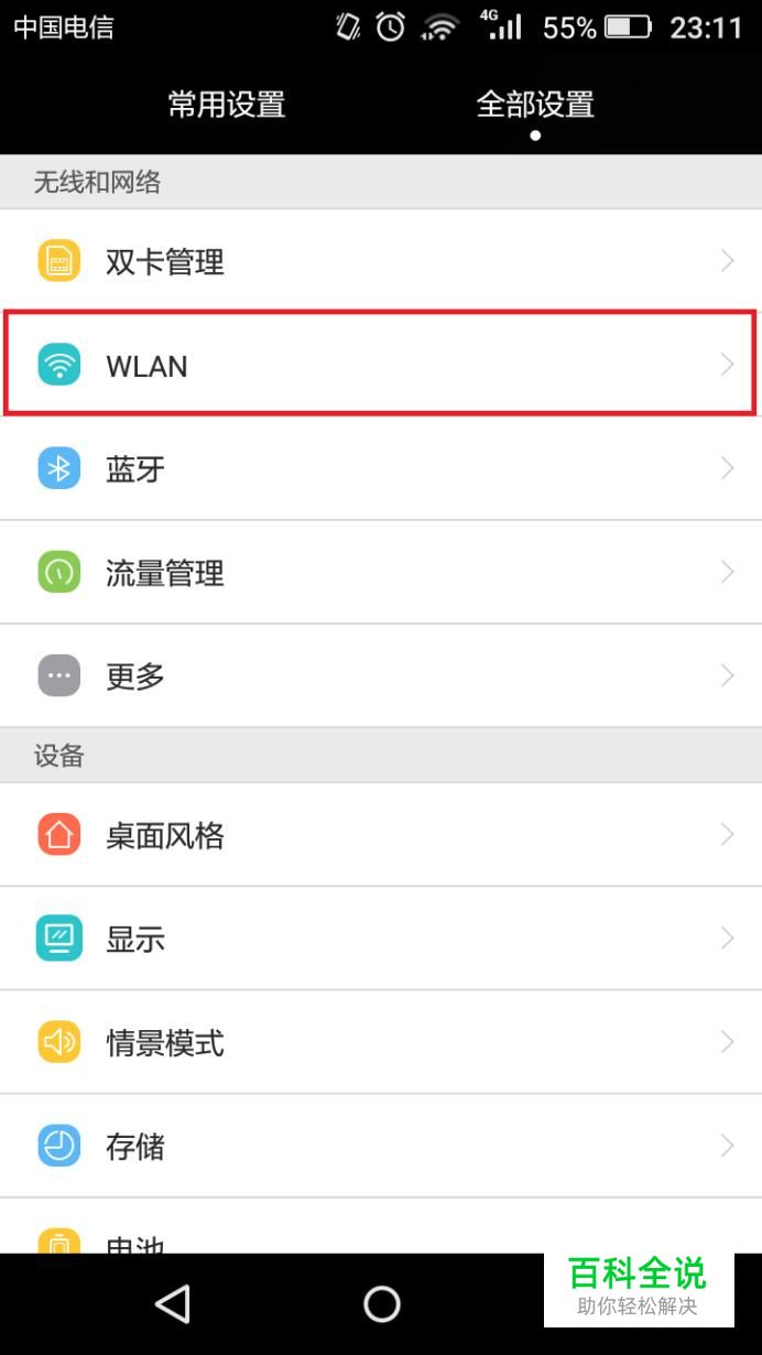 打开手机“设置”,选择“WLAN”。