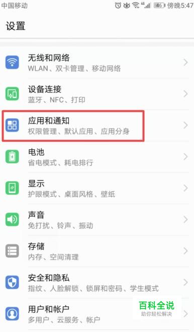 弹出的界面,我们点击应用和通知;