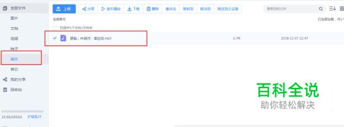 音乐 在百度网盘中,切换到【音乐】,如下图所示: