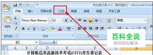 进入主界面,如图所示为例,在表格的最末端建立一个新的列,点击H3,然后点击上方“公式”