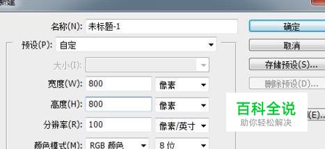 打开Photoshop,然后新建一个800*800像素的画布,如图所示,背景为白色