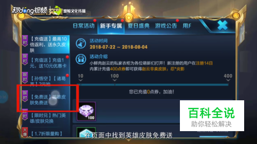 在活动界面中找到英雄皮肤免费送。