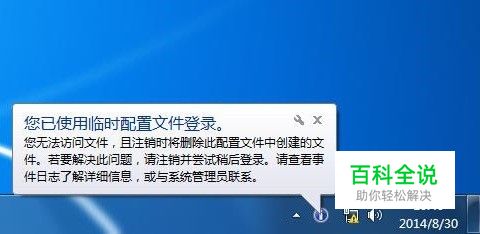 开机之后,任务栏通知区域弹出提示:您已使用临时配置文件登录。 解决思路:先易后难,逐一排查。