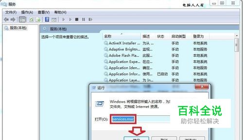 方法一: 开始→运行→输入:services.msc 点击确定(或按回车键)打开服务。