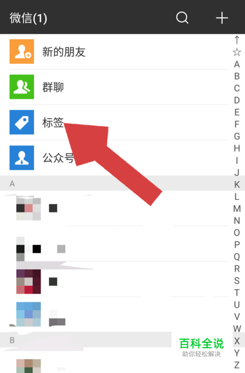 在微信通讯录页面,点击第三行的“标签”,进入所有标签页面。